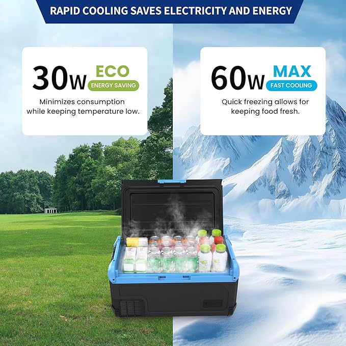 - Ultra-Fast Cooling with Advanced Evaporator Equipped with a high-performance compressor and a blow expansion evaporator made of aerospace-grade aluminum. Delivers faster heat transfer and direct cooling efficiency. Drops from 68℉ to 32℉ in 15 minutes, and to -4℉ in 50 minutes. 360° cooling with 45mm foam and composite insulation. No ice required, perfect for both refrigeration and freezing.