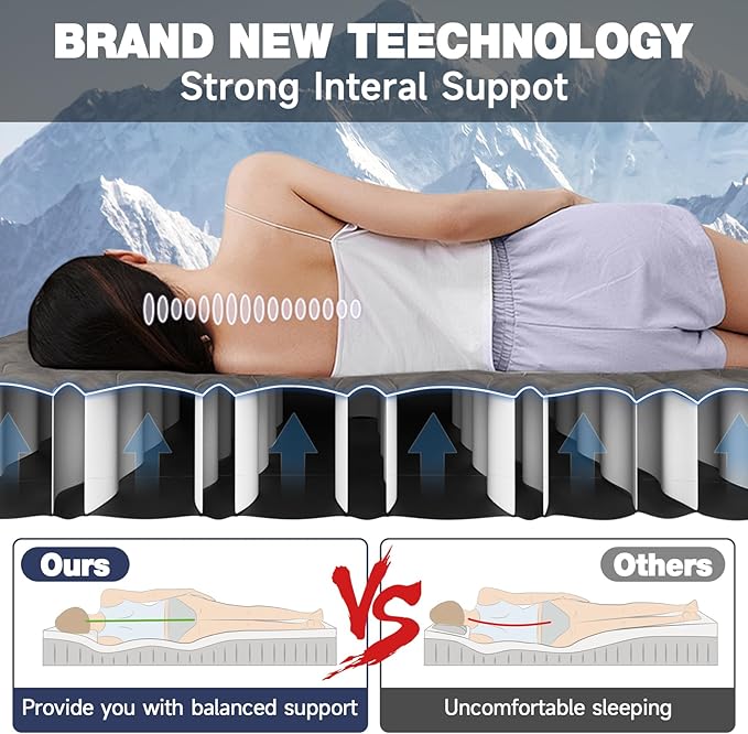 - Superior Comfort & Ergonomics: The soft flocking material and unique wave design provide optimal support to the contours of the body, ensuring a restful and comfortable sleep. Inflatable air mattress conforms to the curves of the body, promoting proper spinal alignment and relieving pressure points for a truly rejuvenating rest.