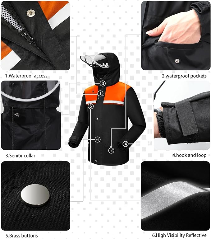- Fabric: This raincoat is made of high-tech Nano polyester pongee 240T lotus leaves style waterproof fabric, it is waterproof, soft, comfortable, anti-oxidant, non-degumming, odorless and so on