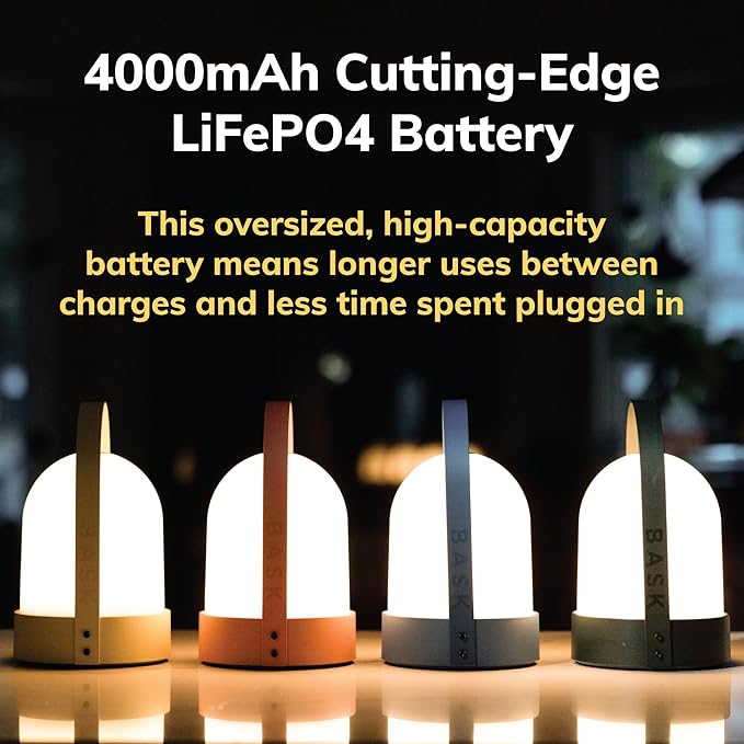 Bask KIN 3.0 Portable Cordless Rechargeable Lantern Table Lamp | Goes 5X Longer Without Needing A Charge - Only Lamp with A Long-Lasting LiFePO4 Battery On The Market