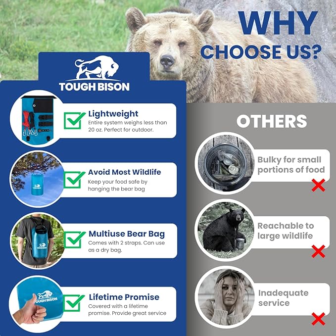 - Efficient Food Hanging System – This bear bag includes a convenient food hanging system, making it an essential item for backpackers to protect food from wildlife on outdoor adventures.