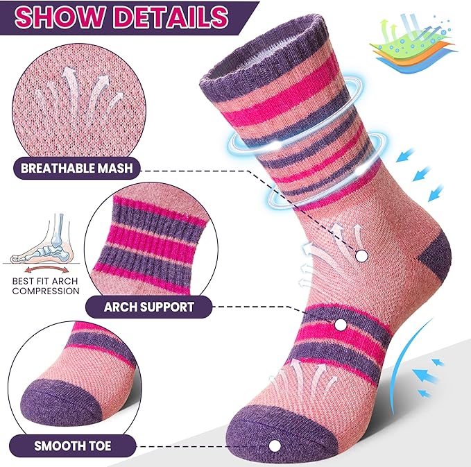 DoSmart Merino Wool Hiking Socks for Women Thermal Winter Warm Moisture Wicking Boot Work Cushion Gift Socks 5 Pairs