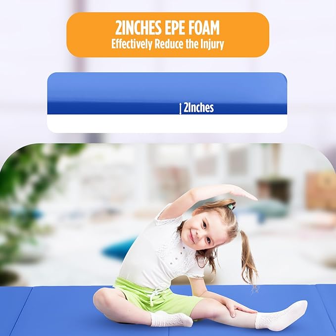 - DURABLE GYMNASTICS MAT:The folding gymnastics mat made of 2” thick EPE, High-density EPE provides a comfortable experience, the gymnastics mat is durable but soft.Gymnastics mat gymnastic tumbling mat.