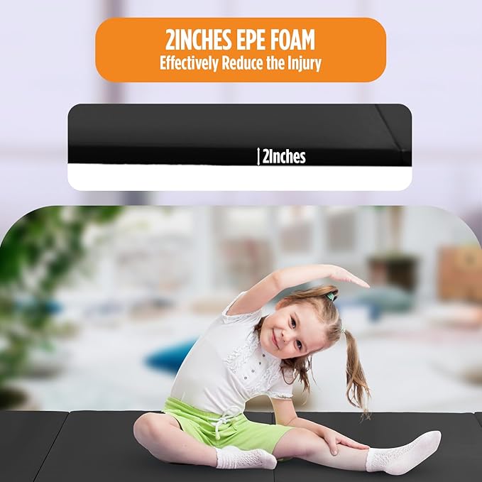 - DURABLE GYMNASTICS MAT:The folding gymnastics mat made of 2” thick EPE, High-density EPE provides a comfortable experience, the gymnastics mat is durable but soft.Gymnastics mat gymnastic tumbling mat.