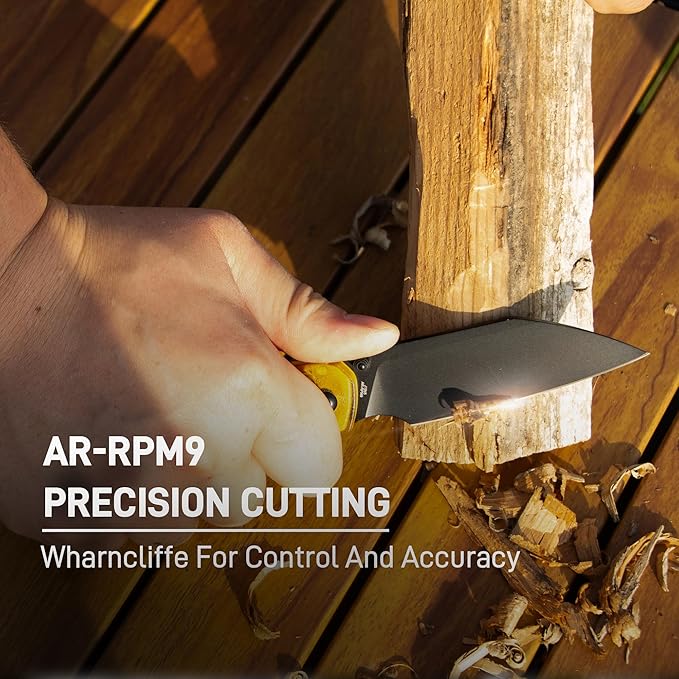- Sharp Cutting Edge: The CJRB Pyrite-Light folding pocket knife features a 3.34'' AR-RPM9 steel blade with a flat grind design, ensuring excellent edge retention and durability, making it an ideal choice for various cutting tasks. Ideal for pocket knife enthusiasts