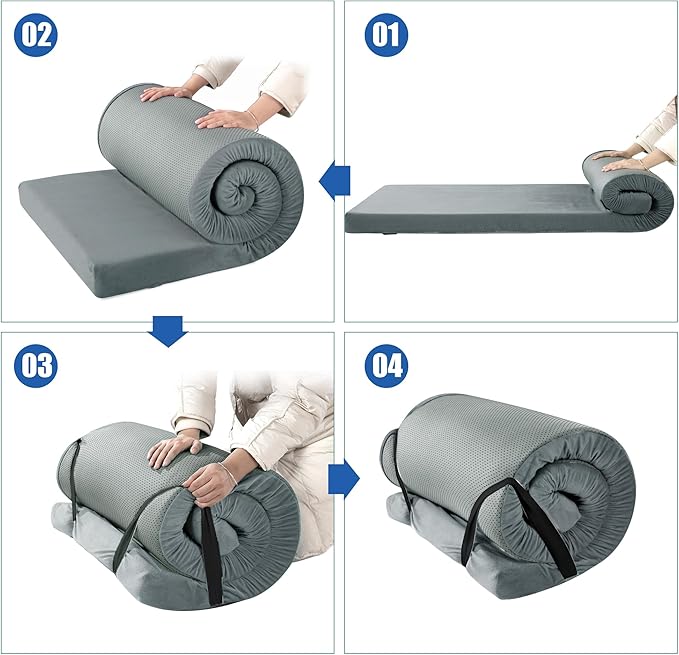 - 【Portable and Easy to Store】Designed for convenience, the mattress rolls up tightly for compact storage and transport. It comes with a sturdy strap to keep it secure, making it easy to carry on hikes, road trips, or any outdoor excursion.