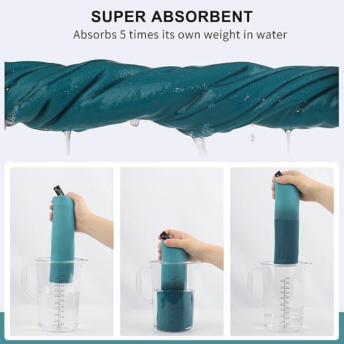 - SUPER ABSORBENT - Absorbs water 5 times of its own weight. FAST DRYING - Dry in no time by hanging it with the snap loop.