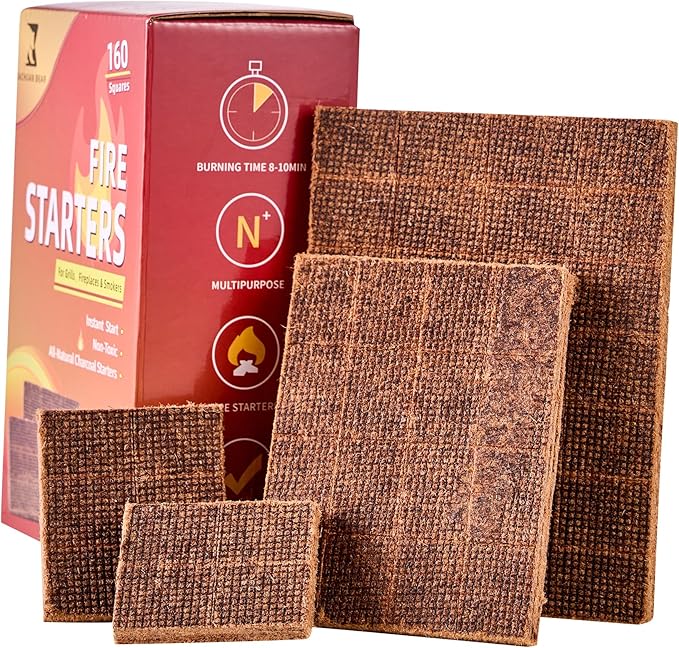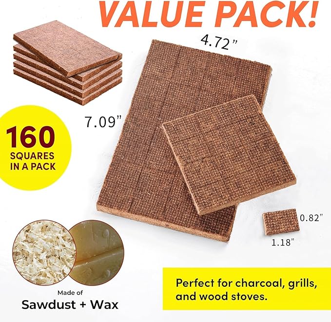 Fire Starter 160 pcs - Fire Starters for Campfire, Outdoor Fire Pit, Wood Stove, Logs Fireplaces, BBQ, Water Resistant & Odorless Firestarter - Camping Essentials