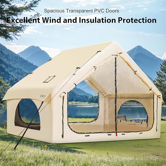 - Set Up in 5 Mins with No Hassle: Say goodbye to the hassle of traditional tent setup! KNUO inflatable glamping tent can be effortlessly inflated in just minutes using the included air pump, no worries about missing or damaged parts