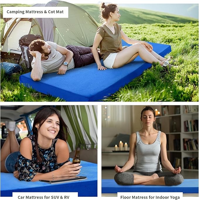- 【2-Layer Memory Foam】The camping mattress features a 2-layer design that includes 1" of high-density memory foam and 2" of soft support foam. This combination creates a medium firmness that balances comfort and support and retains its shape even after extended use.