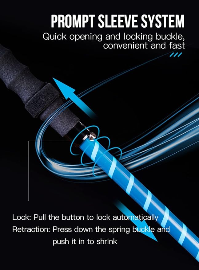 - 【Comfortable Non-slip Grip】Hiking sticks feature a comfortable EVA grip that provides a firm handgrip and makes the poles easier to hold without slipping even when your hand is wet. The poles also contain a comfortable moisture-wicking wrist carrying strap, so you never lose your poles. Built for those who conquer terrain no matter the weather conditions.
