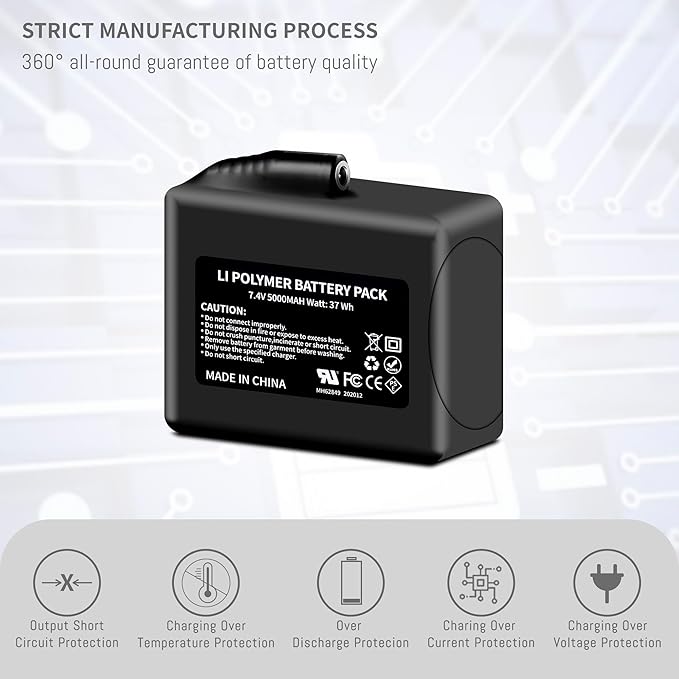 - Parameters of battery:Lithium Ion battery; Voltage: .7.4V; Capacity: 5000mAh; Type: Li-ion, Color: Black; Runtime: ≥60 minutes per charge