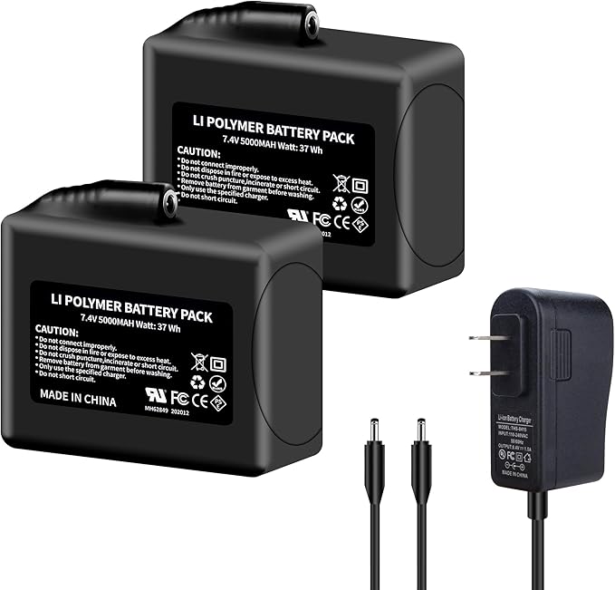 2Pack 5000mAh Lithium-ion Battery Pack for Heated Gloves, Socks, Hats, Mittens, Vest, Jacket, Hand Muff, Boots, Hat, Knee Braces Suit Upgraded Version Battery with 8.4V DC Dual Battery Charger