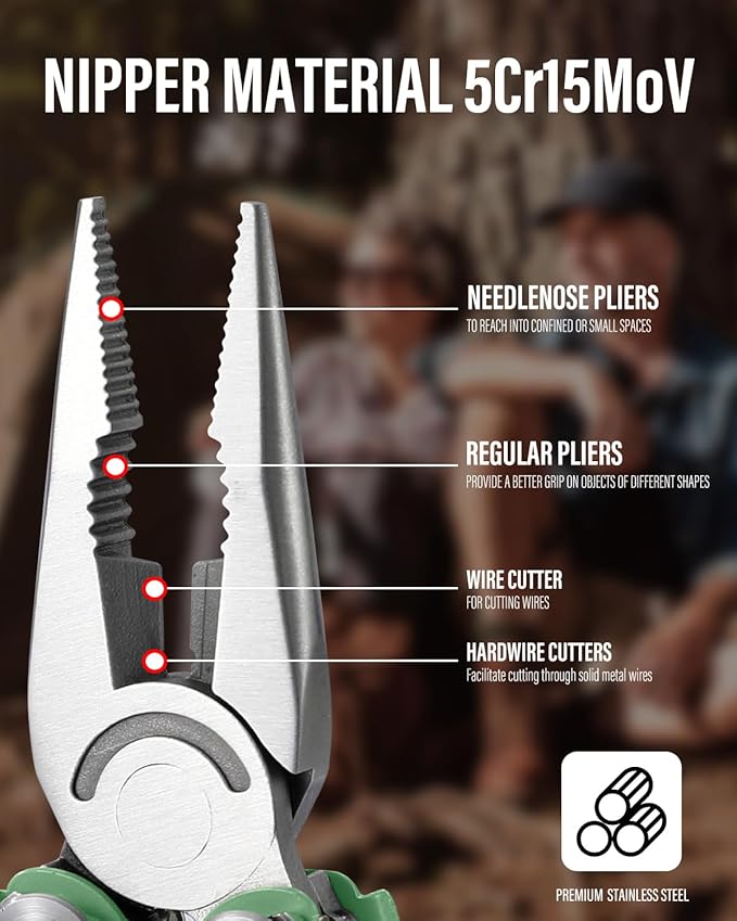 - STURDY MATERIAL: The entire body of the RBLACK multi-tool is made of 5Cr15MoV (high hardness stainless steel), which effectively prevents corrosion and guarantees long-term durability and makes the pliers suitable for harsh and heavy-duty environments