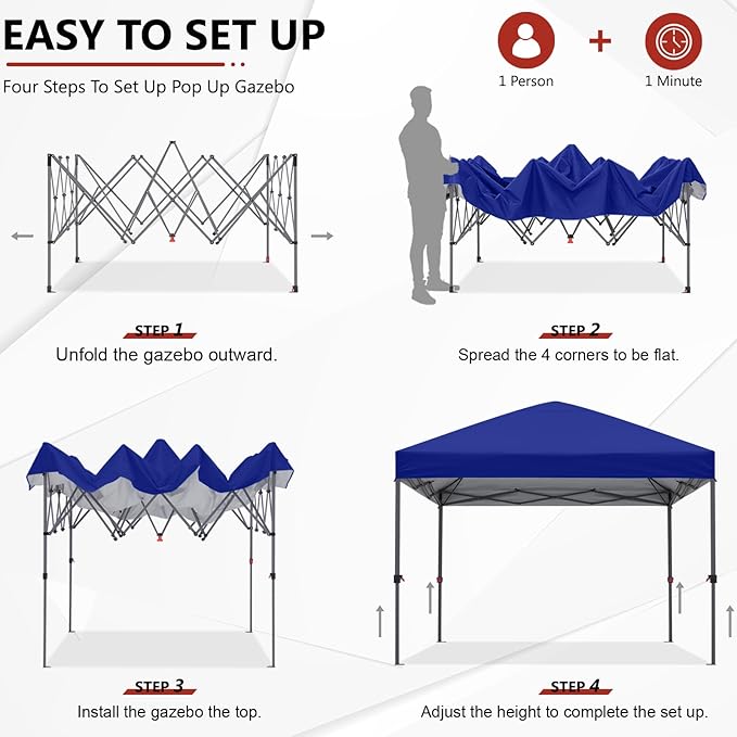 - 【EASY TO SET UP】:The latest technology can smoothly set up the canopy, one person one minute. Never get stuck anymore.