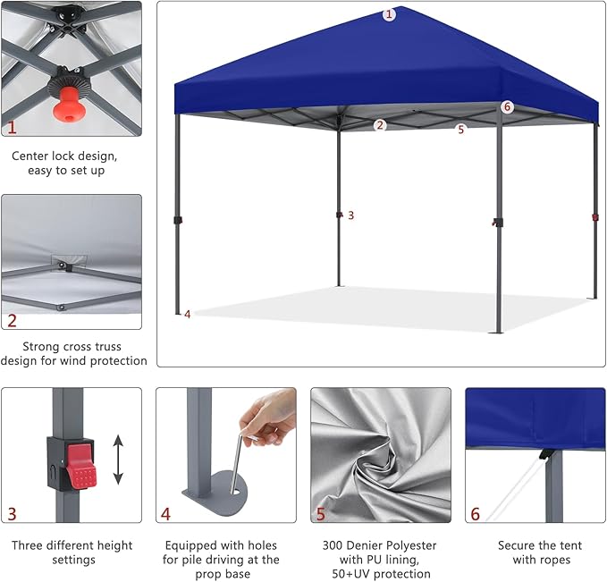 ABCCANOPY Pop Up Canopy - 10x10 Outdoor Patio Portable Canopy Tent with 4 Weight Bags (Dark Blue)