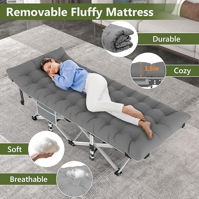 - 【Comfort】Camp cots are typically used for short-term purposes, come equipped with suitable mattresses and support structures, friends visiting can be used as a temporary sleeping bed to ensure users have a good sleep experience.
