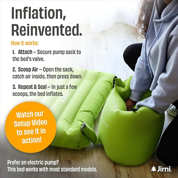 - Innovative Inflation, No Power Needed – Our exclusive pump-sack design makes setup stress-free. This travel toddler bed inflates in minutes with minimal effort — no noisy pumps, no batteries, no outlets required. A smarter way to enjoy a toddler blow up mattress or toddler cot anywhere.