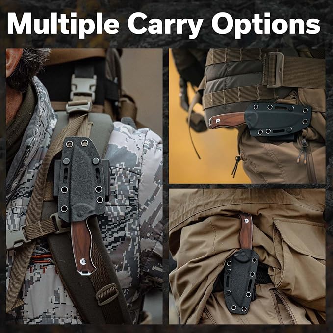 - Multiple Carry Options: Equipped with a kydex sheath, adjustable clip and lanyard, this fixed blade knife allows you to attach it on your belt, backpack