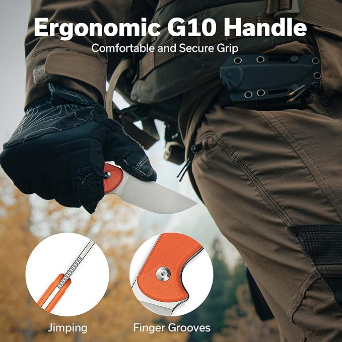 - Ergonomic G10 Handle: Designed with a comfortable, lightweight G10 Handle, it provides a secure grip for extended use, featuring precise jimping for blade control and finger grooves for better grip