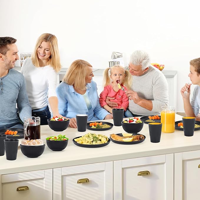 - Wheat Straw Dinnerware Sets: The wheat straw dishes set includes 6 dinner plates, 6 bowls and 6 cups. This lightweight and unbreakable dinnerware set is ideal for everyday use. It's especially great for kids and busy households
