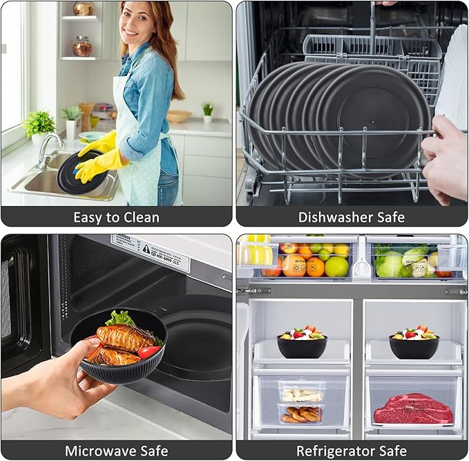 - Microwaveable and Dishwasher Safe: Save time with this microwave-safe dinnerware set (up to 248°F/120°C ). It’s also dishwasher-friendly, ensuring a simple clean-up process, so you can spend more time enjoying your meals and less time cleaning