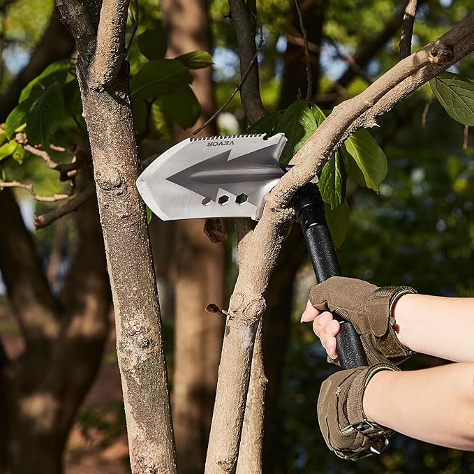 VEVOR Survival Shovel, 8 in 1 Camping Shovel Folding Multitool Kit, Portable and Compact, Stainless Steel, Multifunction for Off-Roading, Camping, Hiking, Outdoor, Survivalist and Emergency