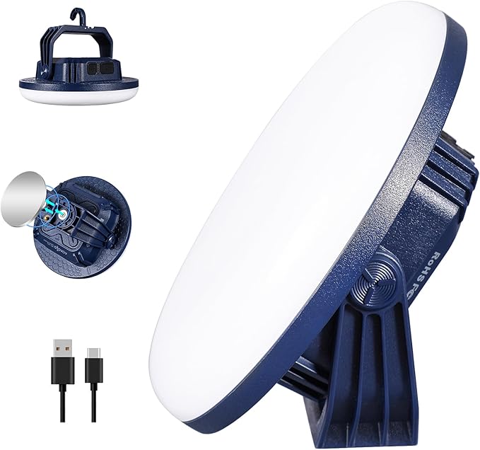 - [3 lighting modes & Stepless Dimming]: Our camping lights is dimmable, Short press to switch between 3 lighting modes (3000K/5000K/8500K), Long press to adjust brightness, providing you with the perfect lighting for any occasion, whether it's a cozy campfire setting or a bright emergency situation.
