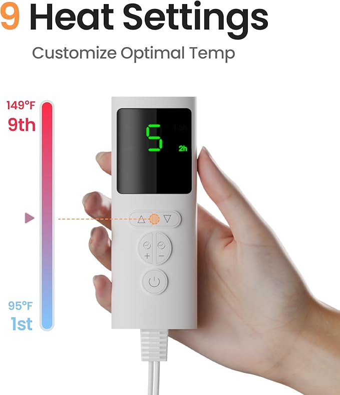 - [Personalized Heating with 9 Adjustable Levels] With 9 temperature settings between 95°F and 149°F, this portable heating pad lets you find your ideal heat level. Whether you need light warmth or deep therapy, you’re in control