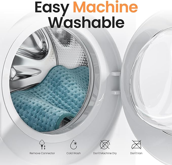 - [Soft, Washable, and Built for Everyday Use] Made from plush, breathable fabric, this heating pad for back pain relief is machine washable for effortless cleaning. Ideal for frequent use, just remove the power connector, toss it in the washer, and enjoy fresh, cozy warmth every time.