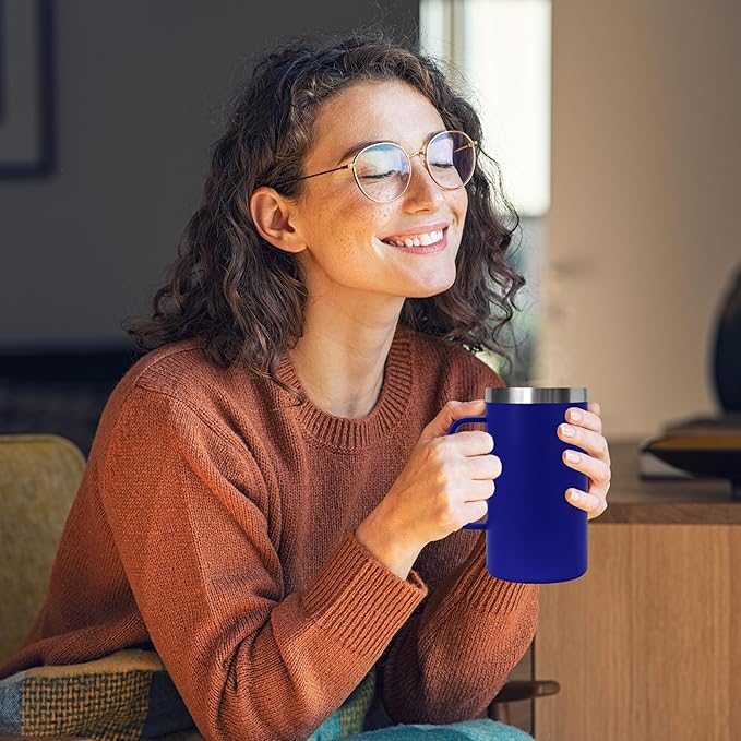 - 24oz Insulated Coffee Mug with Handle: This insulated 24oz mug with handle is made of high quality stainless steel, double-wall vacuum insulation, keeps your drinks at the perfect temperature for hours, whether it's piping hot or refreshingly cold.