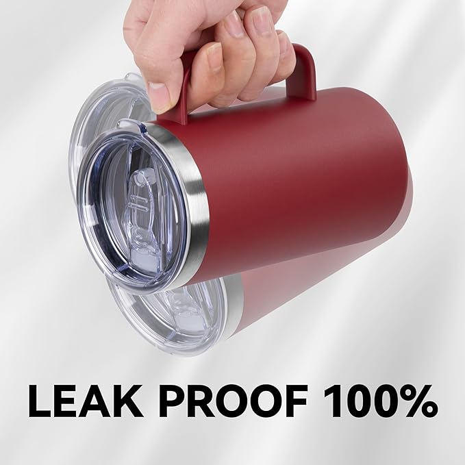 DOMICARE 24oz Mug with Handle and Lid, Stainless Steel Coffee Mug, Travel Mug with Handle, Double Wall Vacuum Coffee Tumbler, Reusable Insulated Cup, Dark Red, Pack 4