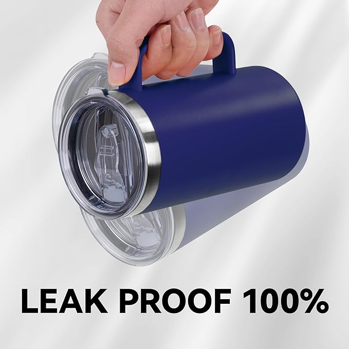 DOMICARE 24oz Mug with Handle and Lid, Stainless Steel Coffee Mug, Travel Mug with Handle, Double Wall Vacuum Coffee Tumbler, Reusable Insulated Cup, Dark Blue, Pack 8