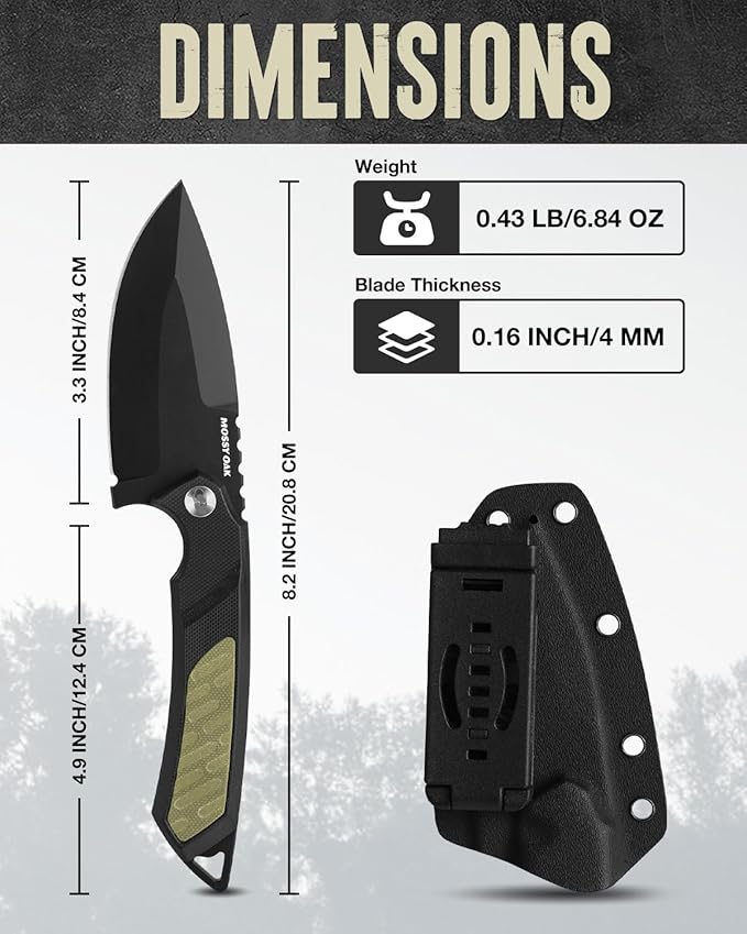 - Secure and Quick-Access Kydex Sheath: This 8-inch fixed blade knife includes a rugged Kydex sheath for safe storage and fast access. Keep your knife protected and ready for action, whether you’re hiking, camping, or in a survival scenario