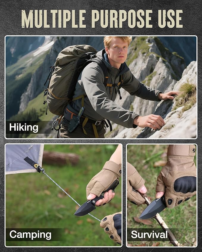 - Multi-Purpose Outdoor Knife for Any Adventure: This 8-inch fixed blade knife is perfect for survival, camping, hiking, or bushcraft use — chop branches, slice rope, and more—a reliable companion for any outdoor challenge