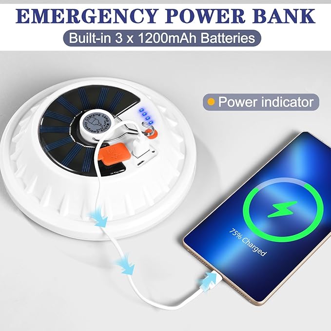 - Solar Charged or USB Rechargeable Power: Lembopo rechargeable hanging light is equipped with 2 charging methods, solar and USB powered, built-in 1200mAh rechargeable battery and solar panel, providing flexibility and convenience for powering your devices, suitable for outdoor camping, power outages, hurricanes and emergencies