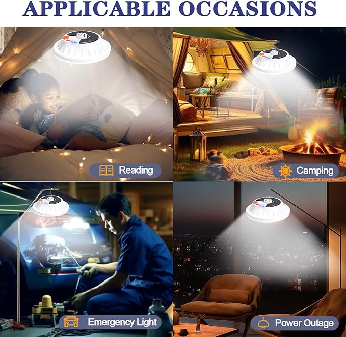 - 5 Lighting Modes: The solar tent light with remote has 5 light modes: High/Medium/Low/Strobe/SOS and can illuminate for 6-48 hours after a full charge. The tent lights for camping is not only suitable for outdoor activities, but also for fishing, caravans, boats, vehicle maintenance, night work, emergency rescue and outdoor adventure, providing you with better lighting
