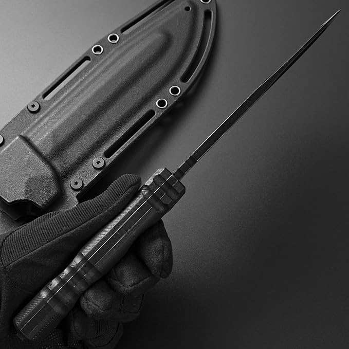 - Ergonomic Nylon Fiberglass Full Tang HANDLE: The better ergonomic High Hardness Nylon Fiberglass handle provide a durable, security grip and increase concealability and multi-environment functionality. This new type material handle is better than G10 handle , it's temperature resistant, has good abrasion resistance, is anti-slip, moisture-proof, does not expand or contract due to normal temperature and moisture exposure, and is exceptionally rugged.