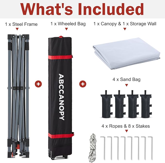 ABCCANOPY Pop Up Canopy with Sidewall,10x10 Outdoor Canopy Tent with Storage Sidewall for Commercial Events with 4 Weights (White)
