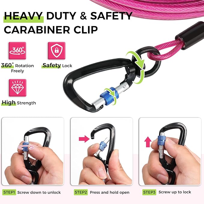 - Ensuring Your Dog’s Safety: This aerial tie-out cable is built to be very strong and supports your dog's running and pulling, keeping them safe within your sight. It frees up your hands and removes the worry of them running off during camping or outdoor activities