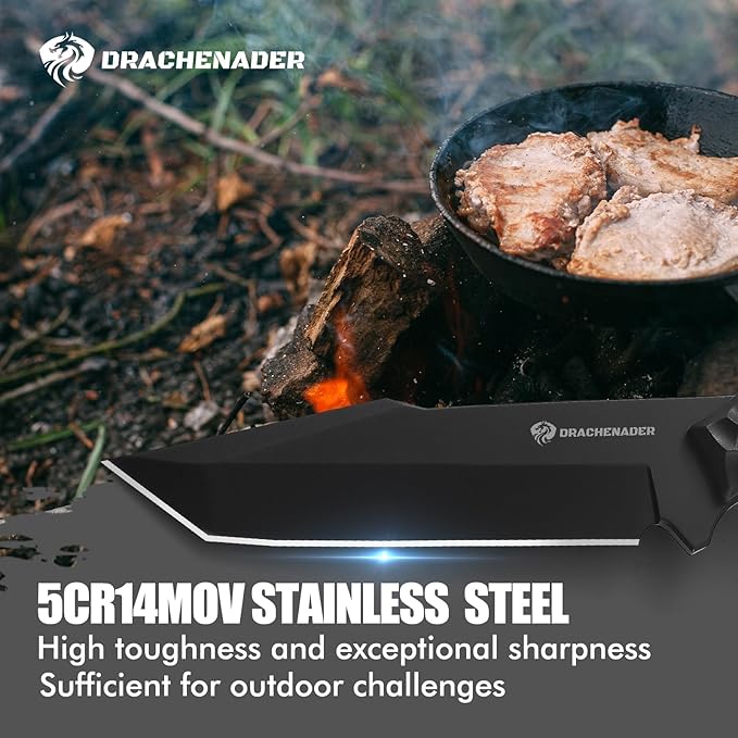 - High-Performance 5Cr14MoV Steel Blade: The DRACHENADER Survival Knife is crafted with a 5.12-inch blade made of 5Cr14MoV steel, offering excellent edge retention and corrosion resistance.