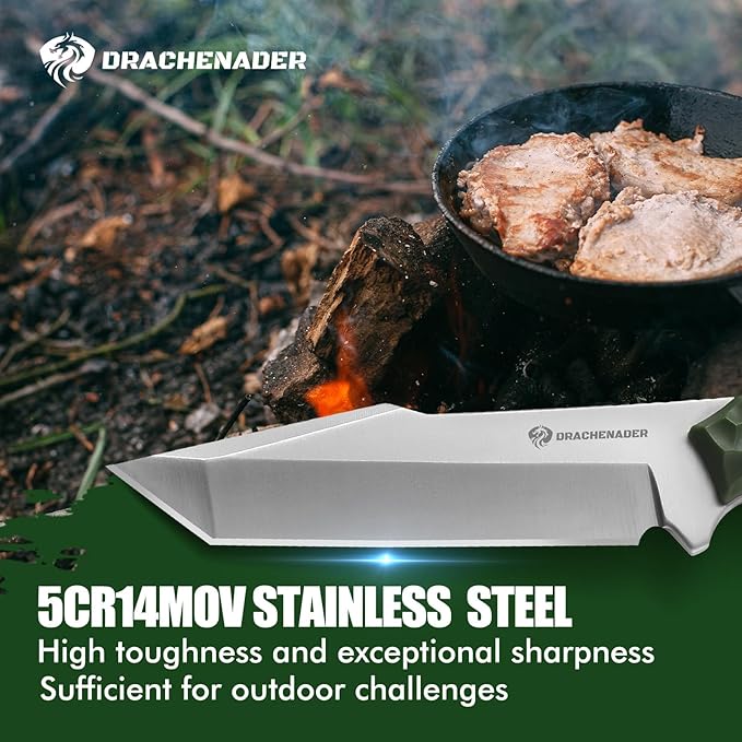 - Durable 5Cr14MoV Steel Tanto Blade: The DRACHENADER Fixed Blade Knife is equipped with a 5.12-inch Tanto blade made from high-quality 5Cr14MoV stainless steel, known for its excellent edge retention and long-lasting durability. Ideal for heavy-duty outdoor tasks, this Tanto fixed blade knife is built for campers, hunters, and survivalists.