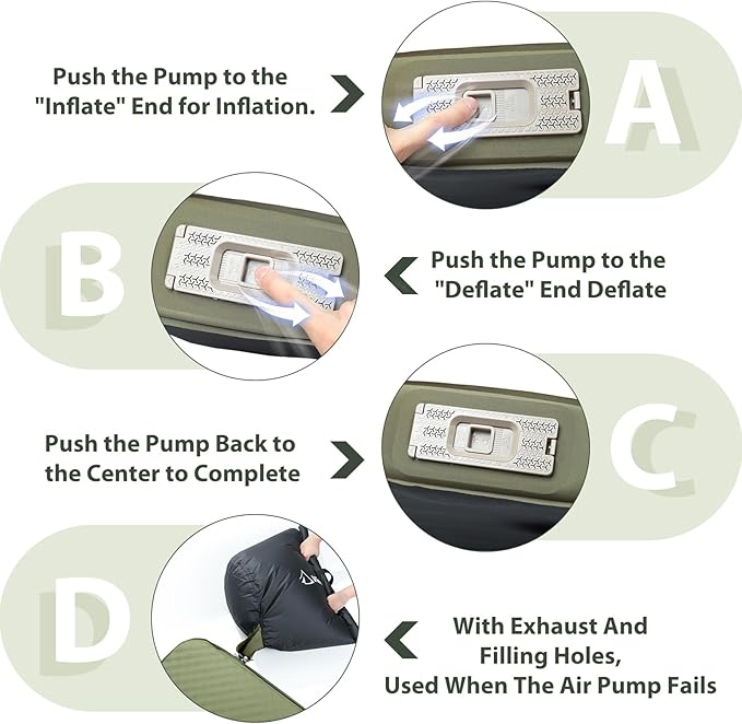 - Easy Inflation And Deflation: We set an air pump inside the side of the camping mattress pad. You only need to turn the valve according to the instructions to achieve automatic inflation and deflation. Just put it aside and wait for a few seconds, and you can use or store it. Note: The product you received is vacuum packed, so it may take up to 5 minutes to inflate it for the first time.