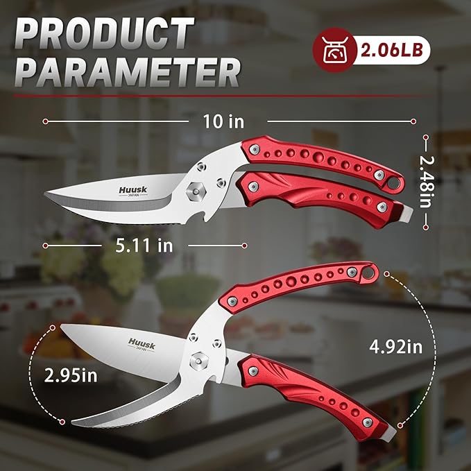 - Huusk Attitude: Adhering to the principles of precision, rigor, and innovation, Huusk kitchen shears for food infuse the spirit of Japanese craftsmanship into every step of their creation, from initial forging to final sharpening. We blend aesthetics, functionality, and timeless tradition to the utmost in each Huusk meat shears heavy duty.