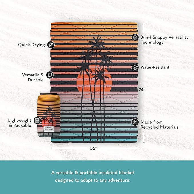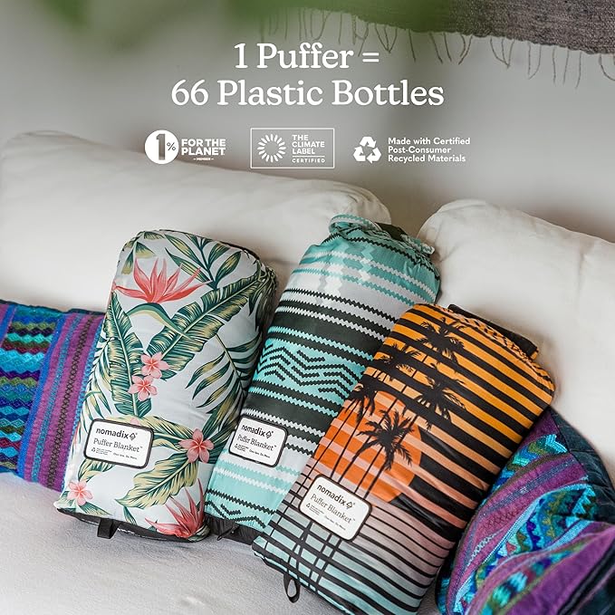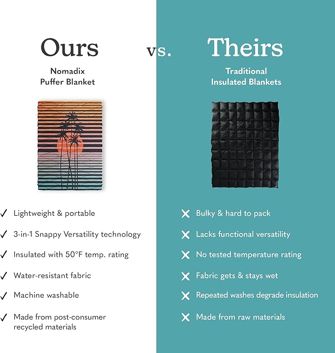 Nomadix Puffer Blanket – Water-Resistant, Eco-Friendly Insulated Blanket with Snaps for Camping, Beach, and Travel, Made from Recycled Materials