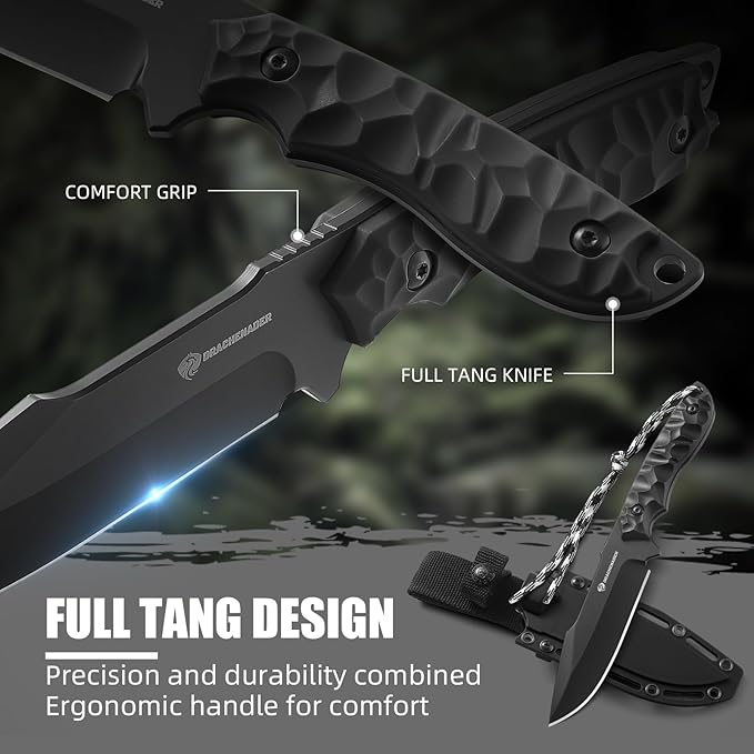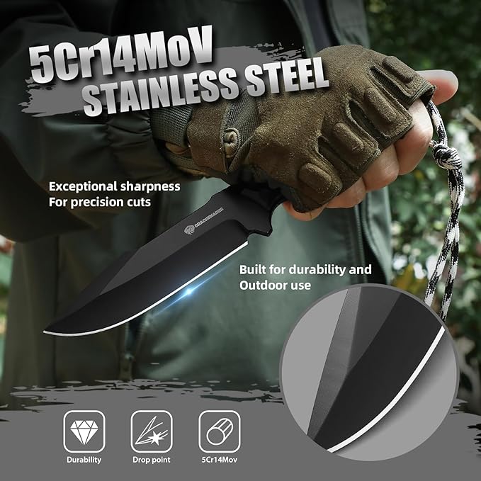 - Durable 5Cr14MoV Steel Blade: The DRACHENADER B-ER-DROP POINT Fixed Blade Hunting Knife features a 5.04" drop point blade made from high-quality 5Cr14MoV steel, delivering excellent edge retention and strength for your outdoor tasks.