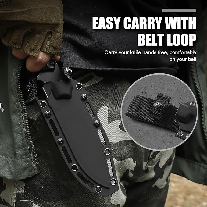 - Carry Options: The knife comes with a high-strength nylon sheath equipped with a universal clip for vertical carry, offering convenient portability. It also features a tactical paracord lanyard.
