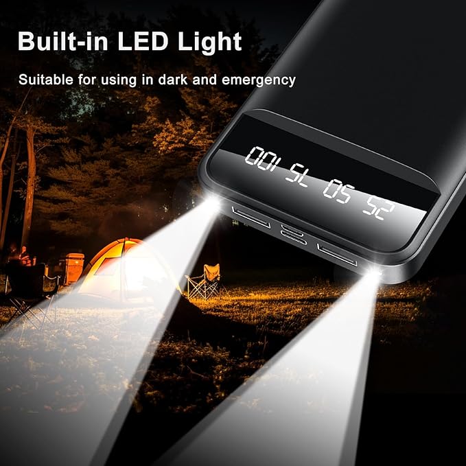 - Flashlight Function – Ideal for Camping & Emergencies – This Power Bank for Camping comes with a built-in LED flashlight for nighttime visibility, power outages, or outdoor use. A true Travel Essentials item for your gear bag.