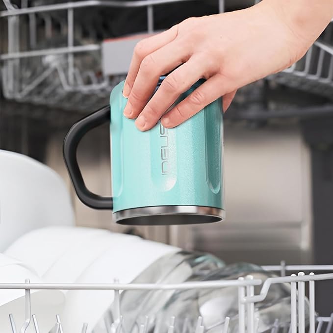 Ideus 16 oz Coffee Cup, Stainless Steel Coffee Travel Mug, Spill Proof Tea Mug with Handle and Lid, Lightweight and Durable, Great for Office Home and Outdoor Use, Sky Blue