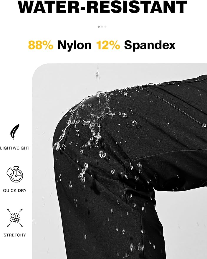 - Water and Stain Resistance: Water-resistant and quick dry fabric wicks moisture to keep your skin dry & comfortable all day. These hiking pants could get dirty and just wipe away the dirt, washed well and dries quickly